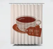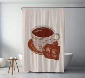 Una sencilla y reconfortante ilustración de una taza de té o café caliente con una etiqueta que reza "UN PASO A LA VEZ". El estilo minimalista y el mensaje amable proporcionan un momento de ánimo consciente.