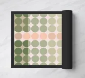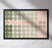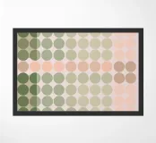Esta fascinante obra geométrica es una obra maestra del arte computacional y recuerda la estética del Op Art y la pintura de campo de color tardía. La composición consiste en una cuadrícula precisa de elementos circulares cuyos sutiles gradientes de color -desde el verde oliva intenso hasta el salvia suave y los delicados tonos rosa y desnudo- crean un flujo orgánico. La distribución aparentemente aleatoria pero calculada de los colores crea una profundidad casi paisajística. Una obra calmante y meditativa que combina la precisión digital con una paleta de colores sensuales y terrosos.