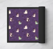 Esta ilustración presenta un estampado de adorables unicornios vestidos con espeluznantes disfraces de Halloween, como fantasma, bruja, vampiro y Frankenstein, rodeados de estrellas y murciélagos. Es una juguetona mezcla de magia y vibraciones de Halloween, que combina la monada de los unicornios con la diversión de la espeluznante temporada. Perfecto para los fans de la fantasía, el arte kawaii y cualquiera a quien le guste celebrar Halloween de forma tierna y caprichosa.