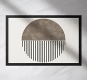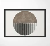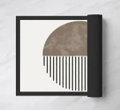 Obra de arte geométrica minimalista con líneas negras y un semicírculo en un tono marrón con texturas, sobre un fondo neutro de color beige suave. Obra de arte abstracta con texturas suaves para estilos de interior bohemio, moderno, industrial y básico. Precioso para el salón, el estudio y la oficina.