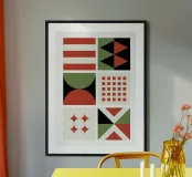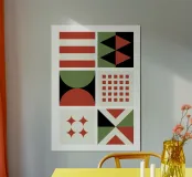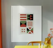 Bauhaus Geometric Pattern Grid | Red & Green Mid-Century Pri hahnemühle