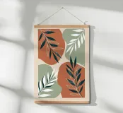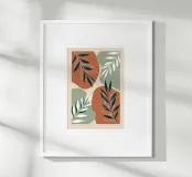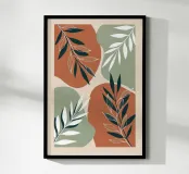 Aporta un toque de estilo bohemio moderno a tu hogar con esta exclusiva impresión de arte botánico. Con una cautivadora mezcla de formas abstractas en cálido terracota y relajante verde salvia, esta ilustración minimalista muestra elegantes hojas con una mezcla de detalles sólidos y dibujados. La paleta de colores terrosos y las formas orgánicas crean un ambiente sereno y elegante perfecto para tu salón, dormitorio, oficina o pared de galería. Esta pieza versátil complementa varios estilos de decoración, desde el moderno de mediados de siglo al escandinavo, y añade un elemento pacífico y natural a cualquier espacio.