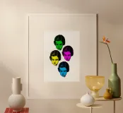 Una ilustración pop-art contemporánea con cuatro retratos dibujados a tinta, cada uno bañado en un tono vibrante diferente.