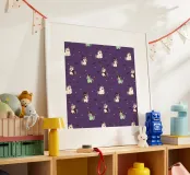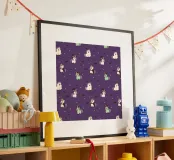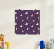 Esta ilustración presenta un estampado de adorables unicornios vestidos con espeluznantes disfraces de Halloween, como fantasma, bruja, vampiro y Frankenstein, rodeados de estrellas y murciélagos.