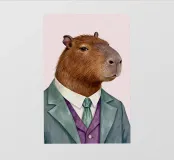 Un refinado carpincho vestido con un traje clásico, que combina encanto y elegancia con un suave toque de humor, perfecto para las paredes de guarderías o espacios lúdicos.