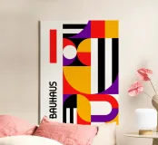 Bauhaus Geometric Shapes Vivid Abstract Color Print Vertical lienzo