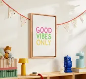 Infunde positivismo a tu espacio con este alegre y divertido estampado tipográfico. La cita motivacional "GOOD VIBES ONLY" se muestra en una divertida fuente de estilo burbuja en una vibrante paleta de alto contraste de rosa fuerte, verde lima y amarillo soleado. Este diseño minimalista a la par que atrevido canaliza una decoración dopaminérgica y la estética del efecto 2000, por lo que es perfecto para un dormitorio, una oficina o un espacio creativo. El póster digital ofrece una magnífica resolución de 7000x5000 píxeles a 300 ppp, lo que garantiza una impresión nítida y colorida de alta calidad.