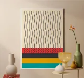 Modern Mid-Century Wavy Lines Abstract Color Block Print lienzo