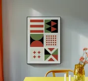 Bauhaus Geometric Pattern Grid | Red & Green Mid-Century Pri metacrilato