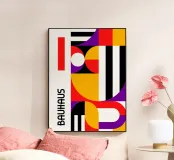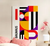 Bauhaus Geometric Shapes Vivid Abstract Color Print Vertical metacrilato