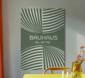 Un póster abstracto elegante y con estilo que combina la tipografía histórica de la escuela Bauhaus con el fascinante movimiento del Op Art. El diseño presenta cuatro cuadrantes de líneas curvas e irradiantes de color crema sobre un fondo verde salvia intenso y relajante, que crea una sutil ilusión óptica de profundidad y fluidez. Esta pieza es una mezcla perfecta de geometría moderna y paleta de colores de moda. Los textos "BAUHAUS" y "JULI - SEPT 1923" aparecen claramente centrados. Se suministra como archivo digital de alta calidad (7000×5000 píxeles, 300 ppp), lo que garantiza una impresión nítida, de alta definición y con calidad de galería.