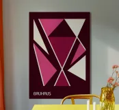 Cartel abstracto de estilo Bauhaus, muy dinámico y fragmentado, con formas triangulares que se entrecruzan. La composición utiliza una rica paleta monocromática de granate intenso, varios tonos de rosa y blanco crema sobre un fondo oscuro. Los nítidos contornos blancos enfatizan la precisión geométrica y la tensión visual creada por las formas superpuestas, capturando la energía del Constructivismo. Se trata de una obra elegante y moderna. Este póster digital se entrega con una resolución superior de 7000x5000 píxeles a 300 ppp, lo que garantiza una impresión excepcional de alta calidad.