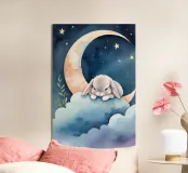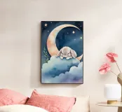 Conejo durmiendo en una nube con luna creciente y estrellas metacrilato