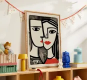 Un magistral retrato doble en el espíritu del cubismo: esta obra combina dos rostros en una fascinante unidad: poderosos contornos negros sobre un fondo color crema, acentuados por unos sensuales labios rojos. La reducción geométrica recuerda a Picasso, mientras que las líneas evocan también el arte africano. La textura sombreada confiere a la composición una profundidad adicional. Una obra sobre la identidad, la perspectiva y la complejidad del yo: minimalista en la forma, máxima en el efecto psicológico. Simple, pero extraordinariamente impresionante.