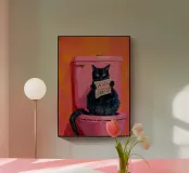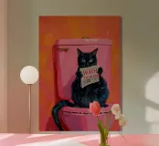 Gato en el retrete con un periódico metacrilato