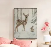 Impresión artística de ciervos y liebres en invierno metacrilato