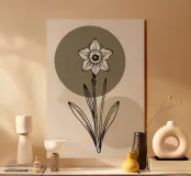 Minimalist line art of a single daffodil flower metacrilato