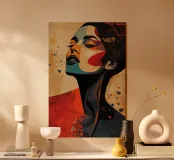 Retrato abstracto de mujer con maquillaje atrevido metacrilato
