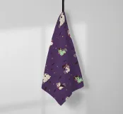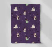 Esta ilustración presenta un estampado de adorables unicornios vestidos con espeluznantes disfraces de Halloween, como fantasma, bruja, vampiro y Frankenstein, rodeados de estrellas y murciélagos.