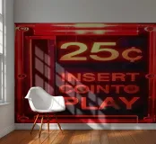 Este póster evoca la auténtica sensación retro de la época de los salones recreativos: "25¢ Insert Coin to Play", el icónico cartel luminoso de los salones recreativos. Con su color rojo brillante y su encanto nostálgico, recuerda a los juegos de píxeles, las máquinas tragaperras y el comienzo de una ronda de juego. Perfecto para jugadores, aficionados a lo retro o como elegante elemento decorativo en una sala de juegos, un bar o un salón. Imprescindible para los amantes de las máquinas recreativas.