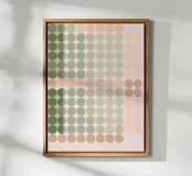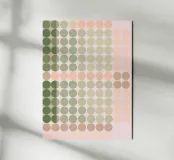 Esta fascinante obra geométrica es una obra maestra del arte computacional y recuerda la estética del Op Art y la pintura de campo de color tardía. La composición consiste en una cuadrícula precisa de elementos circulares cuyos sutiles gradientes de color -desde el verde oliva intenso hasta el salvia suave y los delicados tonos rosa y desnudo- crean un flujo orgánico. La distribución aparentemente aleatoria pero calculada de los colores crea una profundidad casi paisajística. Una obra calmante y meditativa que combina la precisión digital con una paleta de colores sensuales y terrosos.