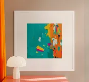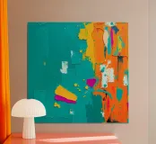 obra abstracta con colores vivos y pinceladas texturizadas. poster
