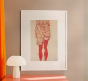 Egon Schiele - Mujer de pie vestida de rojo poster