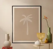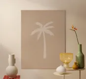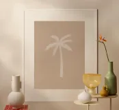 Luz boho beige blanco orgánico abstracto minimalista palmera poster