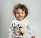 Un caprichoso dúo de formas y sonrisas: esta encantadora jirafa geométrica y su alegre compañero pájaro llevan el estilo Bauhaus al mundo del juego. Con atrevidos colores primarios y formas minimalistas, la obra de arte equilibra la precisión del diseño con la alegría infantil. Ideal para guarderías, espacios creativos o cualquier persona atraída por la simplicidad moderna y alegre.