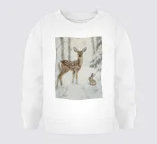 Un delicado motivo invernal con un joven ciervo y un pequeño conejo en un bosque nevado. Colores suaves, bonitos detalles y un ambiente tranquilo hacen de este cuadro una maravillosa decoración para el Adviento y la temporada invernal. Perfecto para los amantes de los animales, de la naturaleza y para cualquiera que aprecie el arte festivo y apacible. Ideal como obra de arte invernal, cuadro navideño, póster de ciervos, ilustración de animales del bosque, decoración de pared festiva, idea de regalo navideño, póster festivo, arte invernal nostálgico y acogedora decoración para el hogar.