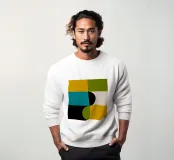 Inspirada en la Bauhaus y en la estética moderna de mediados de siglo, esta obra de arte presenta atrevidos bloques geométricos en amarillo, verde, azul, negro y blanco roto. Sus líneas limpias y fuertes contrastes capturan la armonía atemporal del diseño modernista.