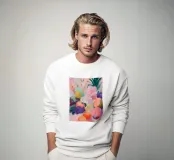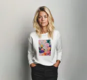 Una colorida obra de arte abstracta que captura la vitalidad de la naturaleza con pinceladas dinámicas. Tonos vibrantes de rosa, naranja y verde se funden en un juego veraniego de frutas, hojas y formas florales. El motivo irradia alegría de vivir y evoca los cálidos días de verano y la libertad creativa.