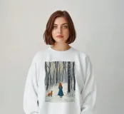 Un motivo invernal de cuento de hadas: una mujer pelirroja y con un abrigo verde está codo con codo con un zorro en un bosque nevado. La escena es misteriosa, poética y llena de simbolismo. Los tonos suaves y el ambiente tranquilo hacen de esta obra de arte un atractivo especial. Ideal como mural, cojín, taza o motivo textil - perfecto para decoraciones de invierno, ideas de regalo y para cualquiera que ame la naturaleza mística y los motivos animales.