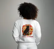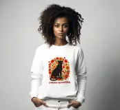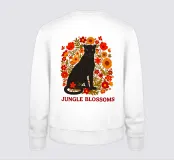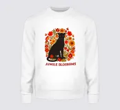 Silueta de pantera negra rodeada de flores naranjas y rojas. Paleta cálida, estampado floral distintivo; ideal para diseños atrevidos, textiles gráficos y accesorios.