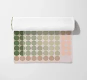 Esta fascinante obra geométrica es una obra maestra del arte computacional y recuerda la estética del Op Art y la pintura de campo de color tardía. La composición consiste en una cuadrícula precisa de elementos circulares cuyos sutiles gradientes de color -desde el verde oliva intenso hasta el salvia suave y los delicados tonos rosa y desnudo- crean un flujo orgánico. La distribución aparentemente aleatoria pero calculada de los colores crea una profundidad casi paisajística. Una obra calmante y meditativa que combina la precisión digital con una paleta de colores sensuales y terrosos.