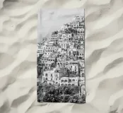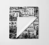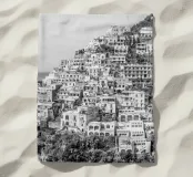 Vista de Positano. Positano en la hermosa Costa Amalfitana. Fotografía de calle y arquitectura en Italia. Fotografía en blanco y negro.