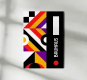 Cette affiche très dynamique est une interprétation audacieuse et abstraite du style graphique du Bauhaus. Le côté gauche présente un jeu énergique de formes géométriques - triangles, rayures et cercles - dans une palette très contrastée de rouge, jaune, violet et noir/blanc. Les rayures diagonales créent une puissante impression de mouvement. Elles contrastent fortement avec le grand bloc noir sur la droite, qui est proprement ancré par le lettrage vertical blanc "BAUHAUS" et un cercle rouge vibrant. Cette pièce sophistiquée est idéale pour ajouter une déclaration moderne et maximaliste. Il est fourni sous la forme d'un fi numérique de première qualité.