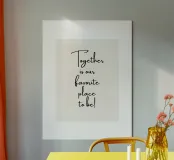 Un design charmant avec l'inscription "Together is our favorite place to be" dans une jolie écriture manuscrite. Une œuvre d'art qui s'adapte à tous les styles.