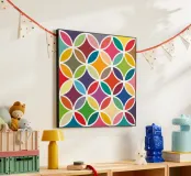 Apportez une vibrante nostalgie à votre espace avec cet art mural Retro Bloom, une délicieuse fusion du charme du milieu du siècle et de l'espièglerie moderne. Chaque pétale superposé forme un motif floral envoûtant qui rayonne de chaleur, de créativité et d'énergie positive. Avec son kaléidoscope de couleurs audacieuses et joyeuses - des jaunes ensoleillés aux bleus profonds et aux roses radieux - ce motif transforme n'importe quel mur en une déclaration de bonheur et de style. Les contours blancs nets lui confèrent un équilibre frais et géométrique, ce qui le rend parfait pour les salons, les studios, les bureaux ou les coins douillets qui ont besoin d'une touche de personnalité.