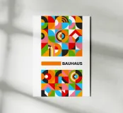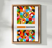 Cette affiche éblouissante présente une grille modulaire complexe qui repousse les limites de l'esthétique du Bauhaus grâce à une palette de couleurs vibrantes et étendues. Les carrés répétitifs contiennent des cercles, des demi-cercles et des formes géométriques imbriqués dans des tons énergiques d'orange, de rose, de vert lime, de rouge et de bleu, contrastant avec le noir et le blanc. Le dessin complexe crée un effet kaléidoscopique, ancré par le mot "BAUHAUS" centré au milieu. Ce poster numérique haute résolution (7000x5000 pixels, 300 dpi) garantit une impression nette et de qualité supérieure qui fait une déclaration audacieuse et contemporaine.