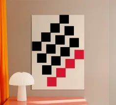 Un poster numérique Op Art dynamique et hypnotique inspiré des mouvements De Stijl et Bauhaus. Le dessin présente une grille de triangles noirs et blancs alternés créant une forte impression de profondeur tridimensionnelle et un motif d'ombres en damier. De petits carrés aux couleurs primaires vives (rouge, bleu et jaune), plus le gris, semblent flotter au-dessus de la surface, projetant des ombres distinctes. Cette illusion visuelle à fort impact constitue une pièce d'apparat moderne. Ce téléchargement numérique de qualité supérieure affiche 7 000 x 5 000 pixels à 300 ppp, ce qui garantit une clarté exceptionnelle et une qualité d'impression supérieure.