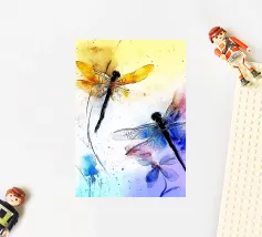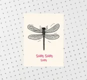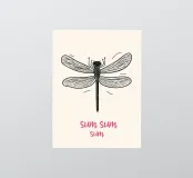 Cette illustration joyeuse d'une libellule avec le texte rose amusant "Sum Sum Sum" capture la légèreté et l'espièglerie de la nature de manière minimaliste.