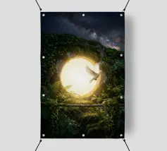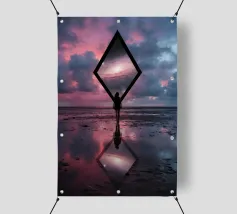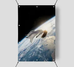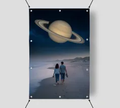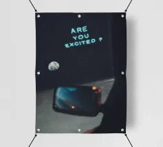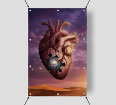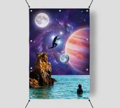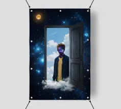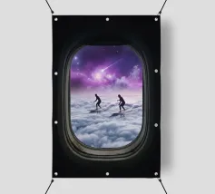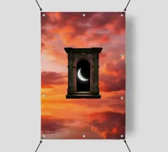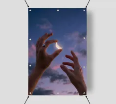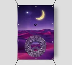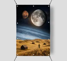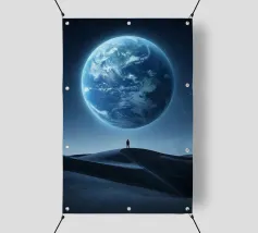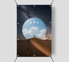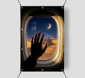 Découvrez la magie du voyage et du ciel nocturne grâce à cette œuvre d'art atmosphérique représentant une main qui touche délicatement le hublot d'un avion surplombant des dunes désertiques rougeoyantes. Un croissant de lune brille dans un ciel bleu profond rempli d'étoiles, créant un mélange serein d'errance et d'émerveillement. Les sables chauds et dorés contrastent magnifiquement avec les tons frais de la nuit, capturant le sentiment de solitude, de réflexion et de rêve au-dessus du monde. Parfait pour les amateurs de voyages, les minimalistes et les fans d'art cinématographique et de vues de fenêtre rêveuses.