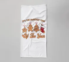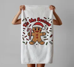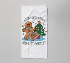 Un cookie joyeux portant un bonnet de père Noël est entouré de décorations festives, de livres et de chocolat chaud. Les mots "I teach the smartest cookies #tistheseason" ajoutent un message ludique sur le thème des vacances.