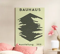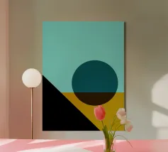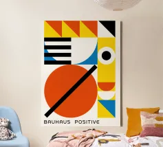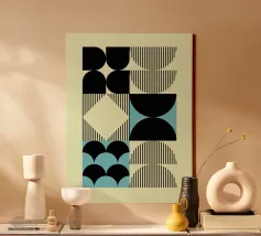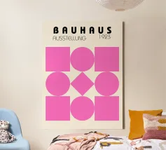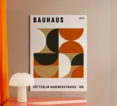 Ce motif Bauhaus abstrait au graphisme clair présente un motif rythmé de triangles et de carrés d'un rouge vif sur un fond crème chaud. L'agencement strictement géométrique crée un équilibre captivant de dynamisme et d'ordre et rappelle les principes classiques du design Bauhaus et Midcentury. Grâce à l'utilisation délibérée du contraste et de la répétition, le motif est à la fois moderne, intemporel et architectural. La palette de couleurs réduite confère au design calme et force, sans perdre de son expressivité. Idéal comme tableau mural pour le salon, poster design, art mural moderne.