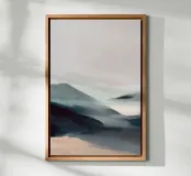 Un paysage abstrait apaisant avec des couleurs douces et sourdes et des collines ondulantes, évoquant la tranquillité et la paix. Parfait pour les intérieurs modernes, les amoureux de la nature et les décorations d'intérieur élégantes.