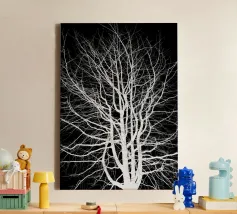 Dessin abstrait captivant d'un arbre aux branches lumineuses toile