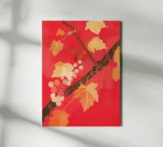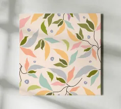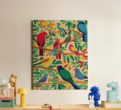 Le motif unique représente une vigne luxuriante avec des oiseaux perchés parmi les feuilles.