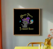 Un chaton noir porte un chapeau de sorcière et tient une baguette magique colorée. La phrase "Hocus Pocus, je ne peux pas me concentrer" joue sur la difficulté de maintenir l'attention, apportant de l'humour et de la sympathie à ceux qui vivent avec le TDAH ou qui se sentent constamment distraits. Idéal pour les fans de chats, de magie, d'Halloween et d'imprimés amusants avec une touche geek et inclusive.