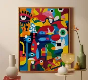 Dans "Colorful Eyes", des couleurs vives et des lignes audacieuses donnent vie à un visage expressif. Cette peinture explore la profondeur de l'émotion humaine à travers une représentation vive et frappante.